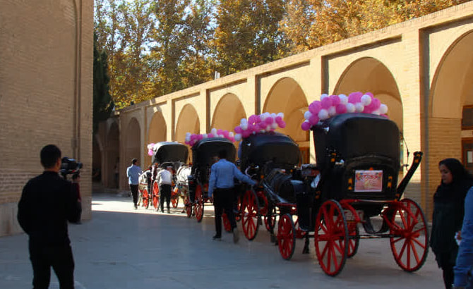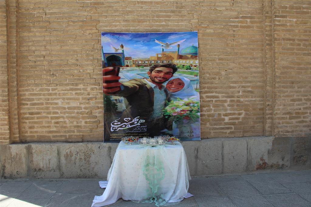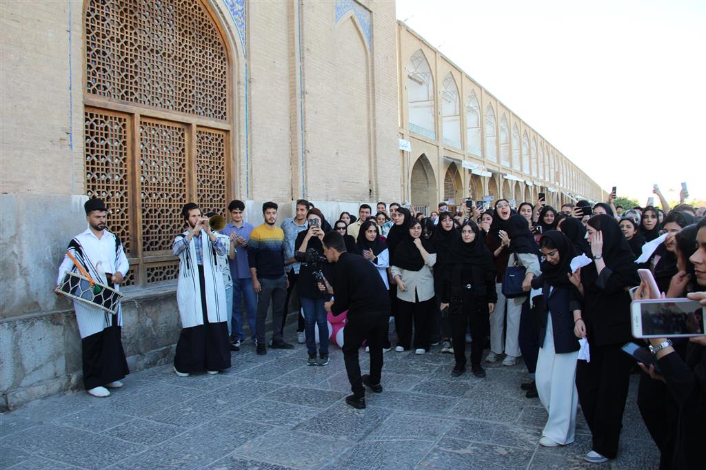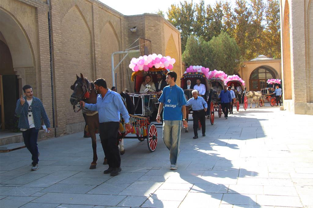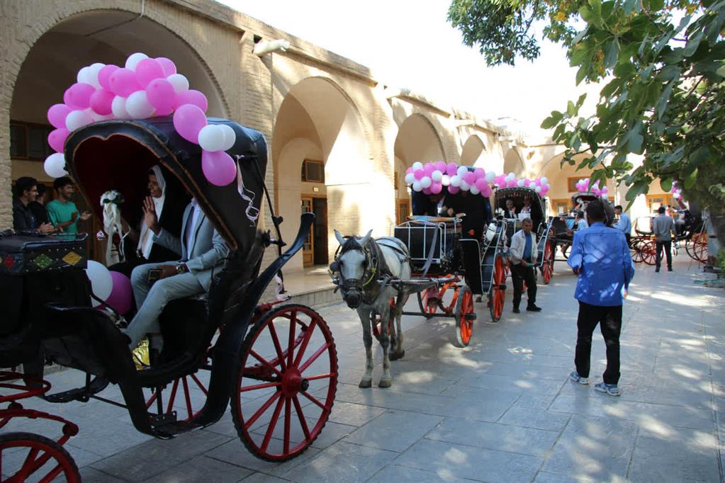 در این مراسم که با نواختن موسیقی محلی سرنا و دهل همراه بود، زوج های دانشجو پس از صرف ناهار و شرکت در کارگاه آموزشی، سوار بر درشکه از ساختمان دانشکده معماری و شهرسازی موسوم به توحیدخانه، وارد میدان امام شدند و پس از گشت و گذار در این میدان و بازدید از بنای تاریخی عالی قاپو، مجددا به ساختمان دانشکده بازگشتند و در حیاط ساختمان، با بدرقه و همراهی سایر دانشجویان، سوار بر تاکسی های برقی تزئین شده، راهی محل برگزاری جشن ازدواج دانشجویی دانشگاههای اصفهان در سالن اجلاس سران شدند.
