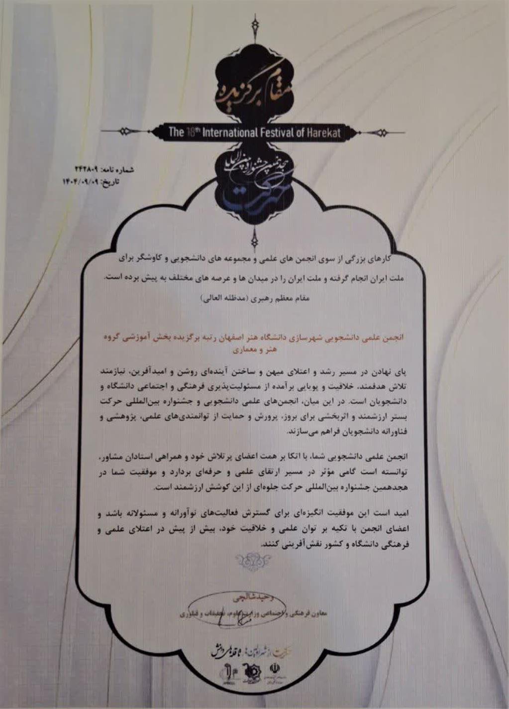 درخشش انجمنهای علمی دانشجویی دانشگاه هنر اصفهان در هجدهمین جشنواره بینالمللی حرکت .(آذر 1404)