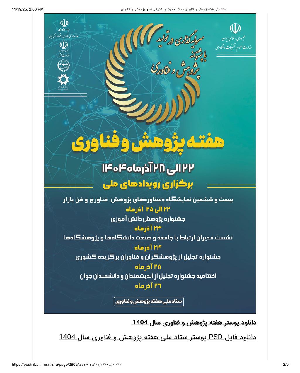 شعار هفته پژوهش و فناوری سال 1404: " سرمایه گذاری در تولید با پشتوانه پژوهش و فناوری "
