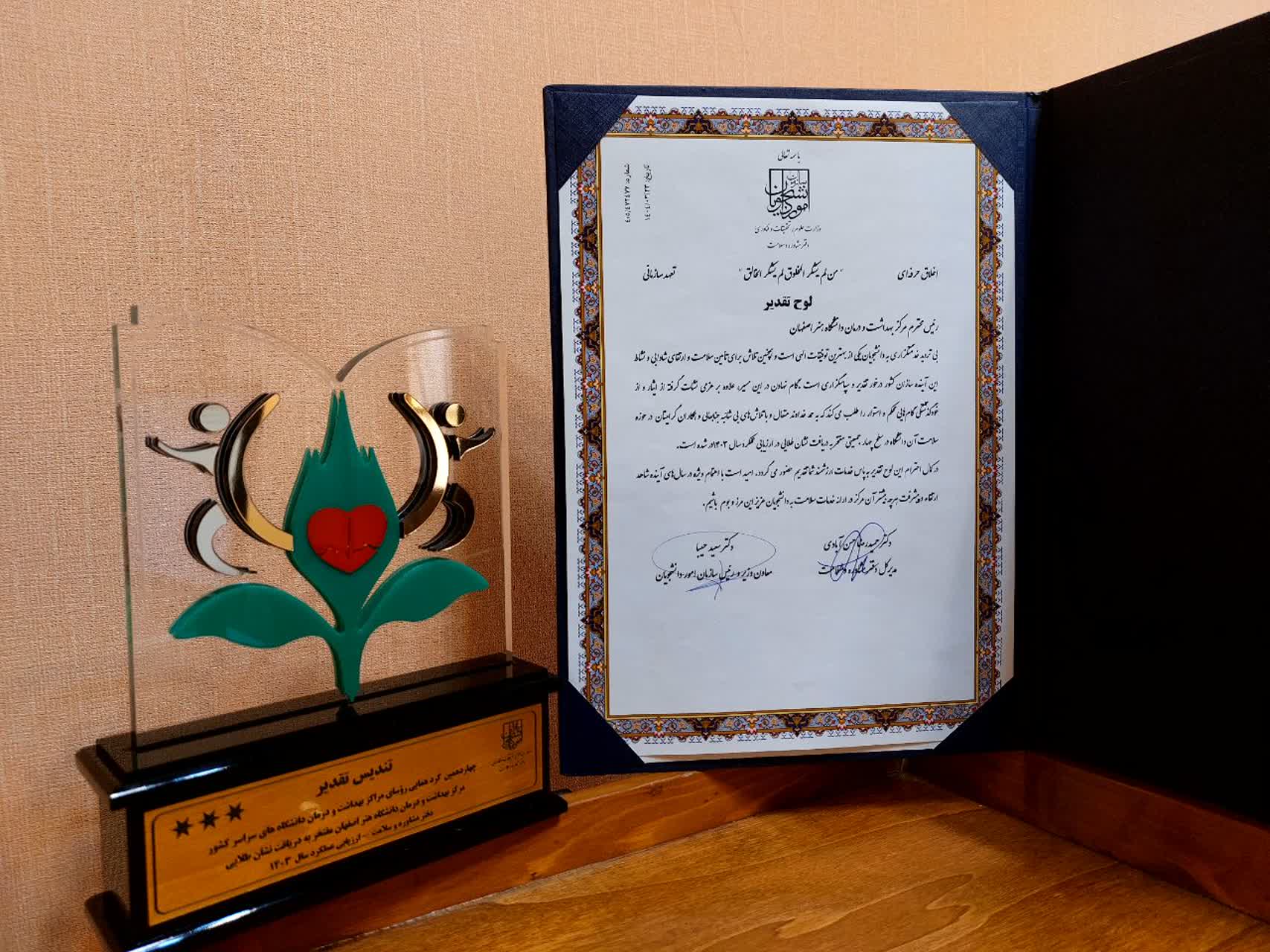 کسب نشان طلا توسط مرکز مشاوره و سلامت دانشگاه هنر اصفهان